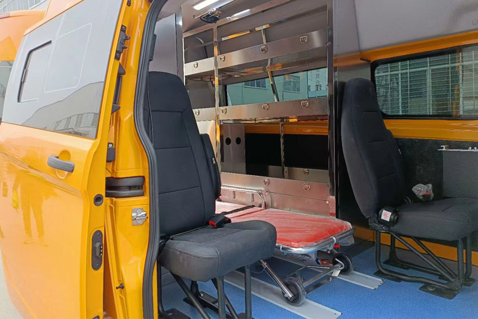 車輛搭載夜間照明燈,監(jiān)控攝像存儲,數(shù)據(jù)傳輸,音像系統(tǒng),氣體防護設(shè)備,傷員簡單救護,氧氣供應,擔架急救和辦公語音調(diào)度等現(xiàn)場作業(yè)設(shè)備。額定載客:4-7人。